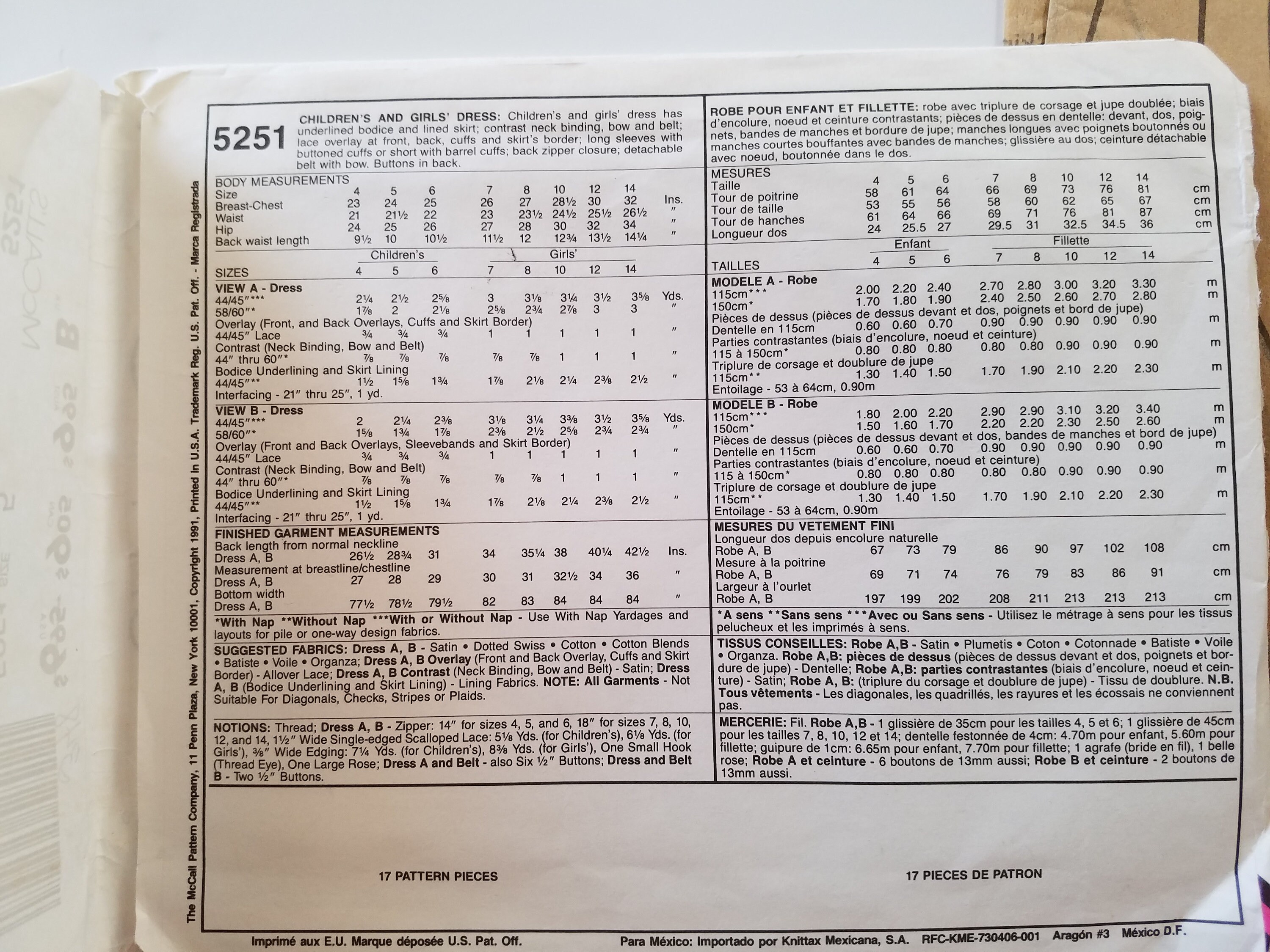 Sewing Pattern For Girls Dress Mccalls 5251 Size 5 Children Etsy